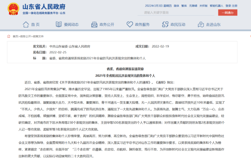 近日,山东省委、省政府发布《关于表扬奖励2021年全省防汛抗洪表现突出的集体和个人的通报》。对230个表现突出的集体、500名表现突出的个人予以通报表扬。其中,宝马bm555线路顶级有限公司所属枣庄市水利勘测设计院党支部书记史仁朋上榜。