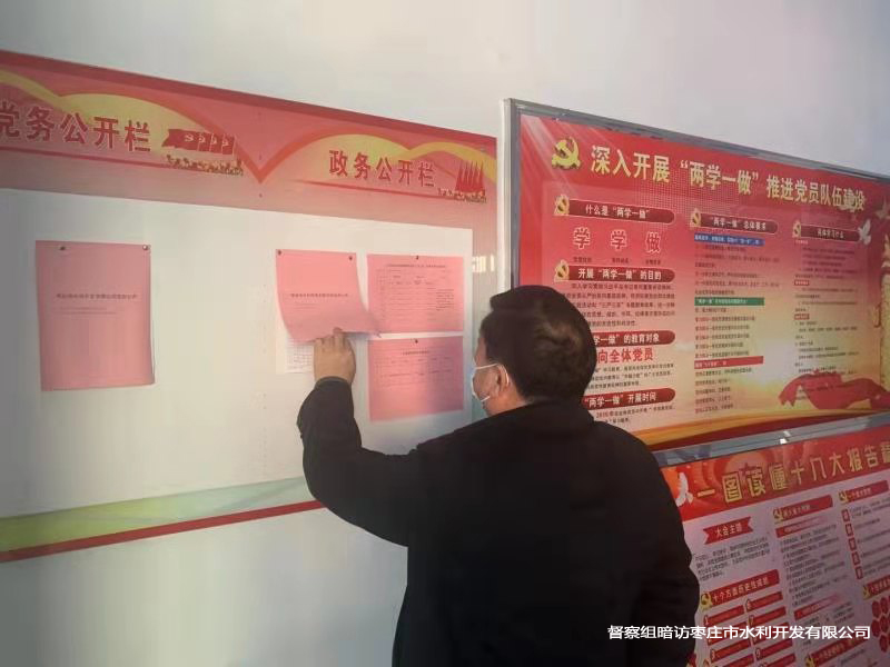 2月8日、9日下午,集团公司党委委员、纪委书记、监察专员李维同志,带领暗访督察组,采取“四不两直”形式,对所属单位和施工现场进行了突击检查,重点督查了党务企务公开、人员在岗、廉洁从业监督举报公告牌落实、春节放假期间值班安排以及疫情防控措施落实等情况。对暗访中发现的问题,督察组通过口头或电话方式及时向有关单位负责人进行了反馈。