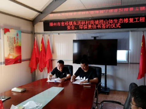 会后,官桥生态环境产业发展有限总经理杨猛同志与项目中标单位签订《滕州市官桥生态环境产业发展有限公司安全环保生产责任书》,落实安全管理责任,强化安全意识和法制责任观念。