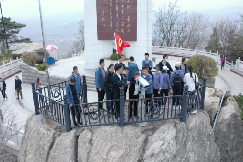 下午,全体党员一起登上孟良崮山顶,瞻仰孟良崮战役纪念碑,站在山顶远眺,当年的孟良崮战场尽收眼底,山峦迭起,地势险峻。回首那场战役的艰难程度,令人震撼,使全体党员在心灵上受到洗礼,更加增强了不忘初心、勇往无前的热血豪情。