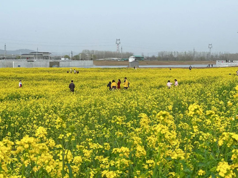 蟠龙河油菜花海新景观,已成为枣庄旅游休闲的好去处!