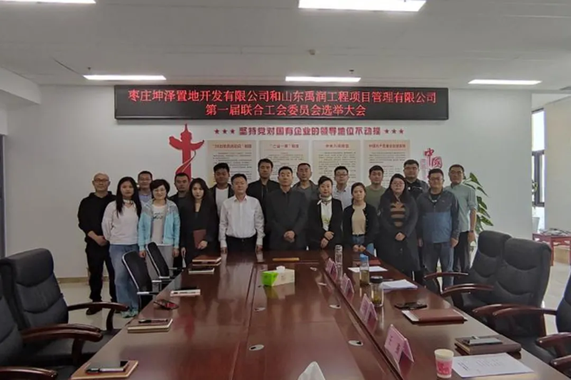 5月11日上午,枣庄坤泽置地开发有限公司和山东禹润工程项目管理有限公司召开第一届联合工会委员会选举大会,会议由枣庄坤泽置地开发有限公司总经理史仁朋主持,集团工会主席、山东鸿禹工程监理咨询有限公司总经理王学亮,集团工会女职工委员会主任、枣庄市淡水养殖试验场场长王燕,枣庄坤泽置地开发有限公司副总经理刘志国,副总经理戴文玉,山东禹润工程项目管理有限公司副总经理杨光及全体职工参加会议。