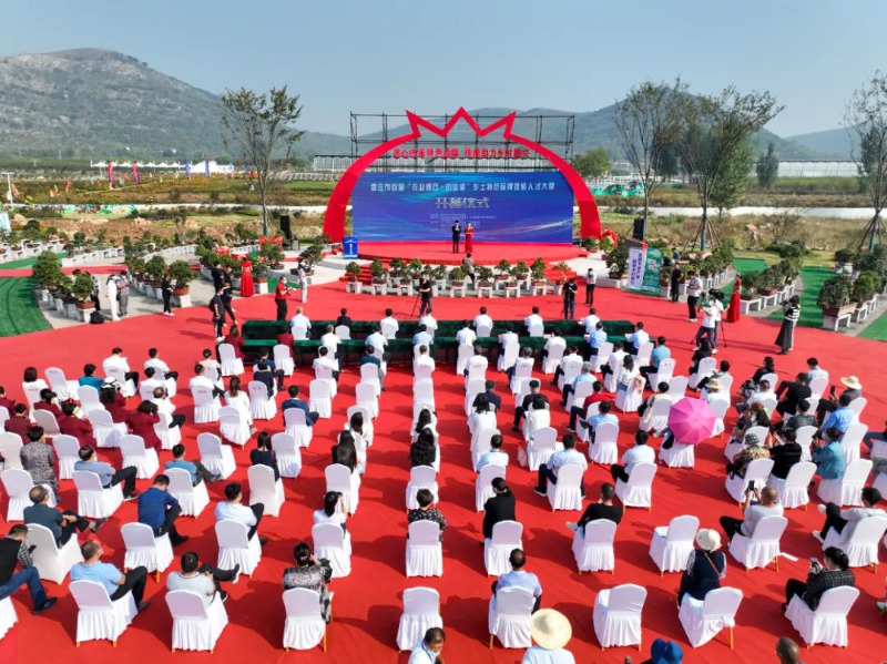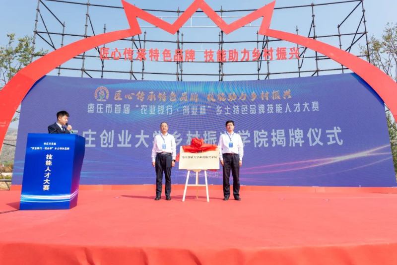 与会领导共同共同为为“枣庄创业大学乡村振兴学院”揭牌并推动推杆卷轴启动大赛。