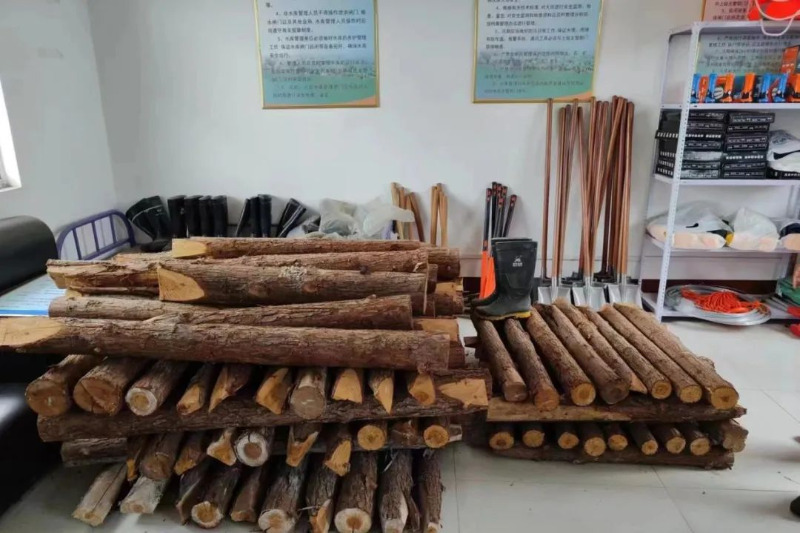 专家组查看防汛物资储备情况