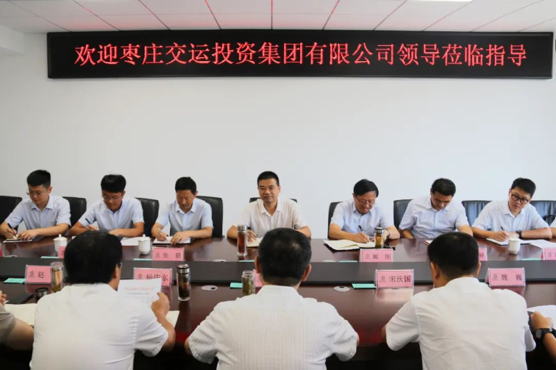 8月17日上午,枣庄交运投资集团党委书记、董事长王贺龙,党委副书记、总经理阚刚,党委委员、副总经理张毅、李福祥一行到我集团交流学习、洽谈合作。集团公司党委书记、董事长刘巨,副总经理杨庆东,党委委员、副总经理宋庆国、赵胜,党委委员魏巍以及有关部室、单位主要负责同志参加了会议。