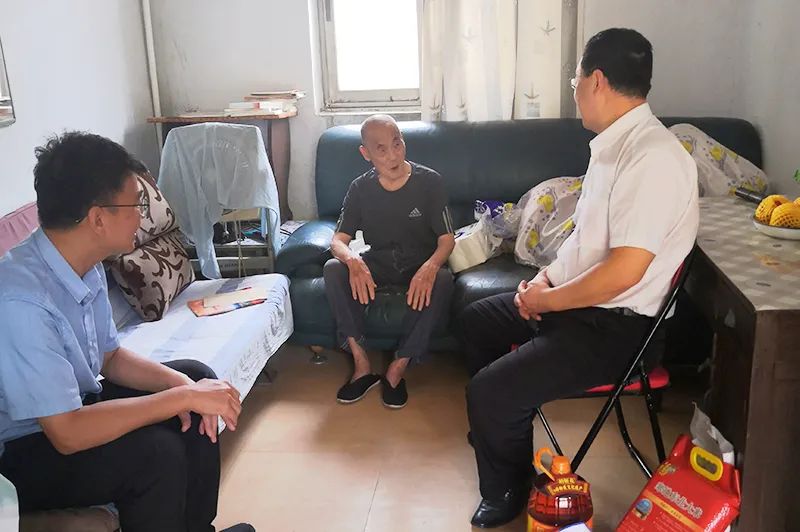 在离休干部陈子刚家中,集团公司慰问组一行与陈子刚同志亲切交流,详细询问他的生活起居与身体健康状况,认真听取和征求老干部的意见和建议,并为他送上慰问金和慰问品,感谢老干部对集团公司做出的积极贡献,并叮嘱他要保重身体,保持乐观心态、享受美好生活。