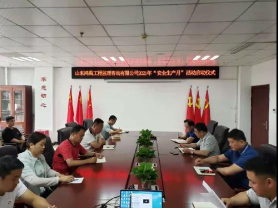 近日,山东鸿禹工程监理咨询有限公司组织召开了以“落实安全责任、助力工业强市、产业兴市”为主题的“安全生产月”启动仪式,会议由副总经理田辉主持,副总经理孙伯益、宋海涛,各片区负责人及从事安全生产的工作人员参加了会议。
