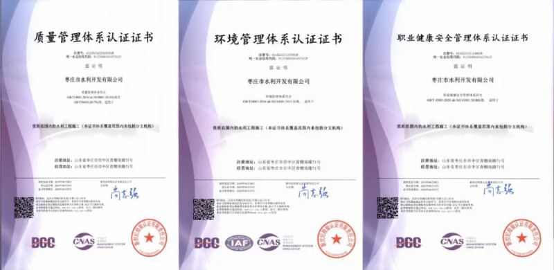 6月10日,枣庄市水利开发有限公司顺利通过了“质量、环境、职业健康安全管理”三体系认证审核。