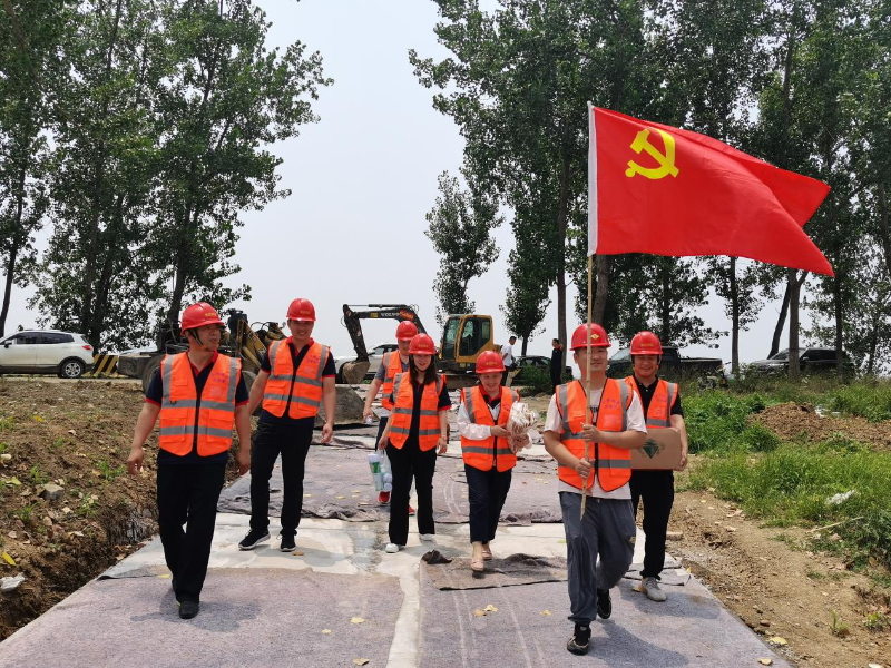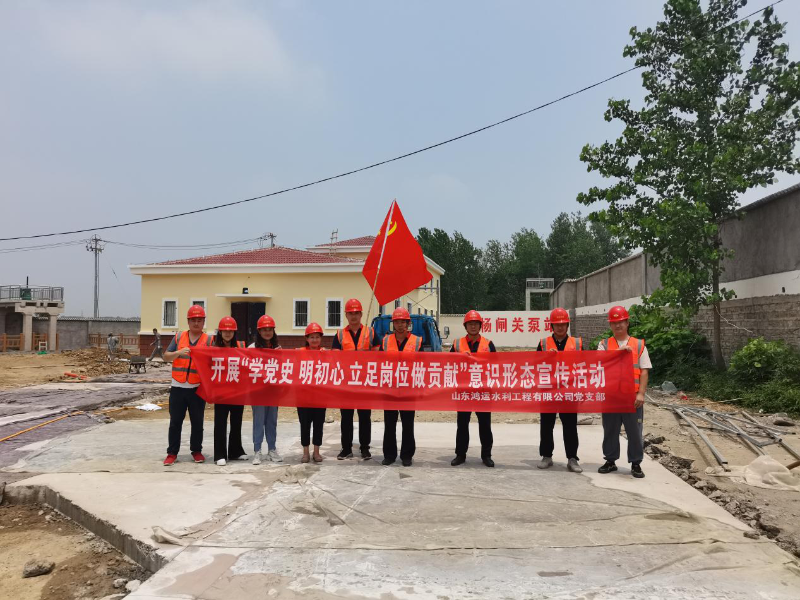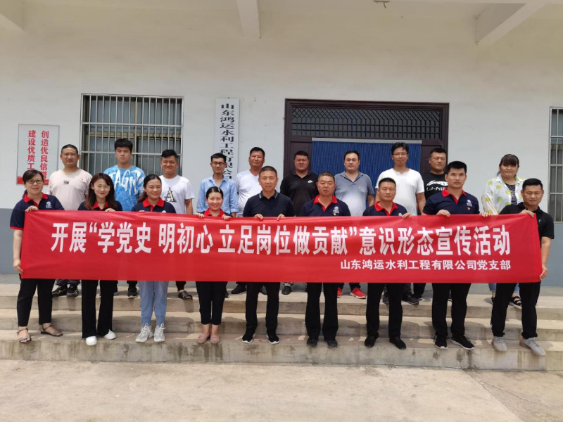 在党的百年华诞即将来临之际,鸿运党支部为进一步推动党史学习教育走深走实,扎实开展“我为群众办实事”实践活动。6月28日下午,组织支部党员代表深入党建联系点山东省淮河流域重点平原洼地岩运片治理工程项目部,围绕党史学习教育,结合安全生产工作,开展“学党史 明初心 立足岗位做贡献”意识形态宣传活动。